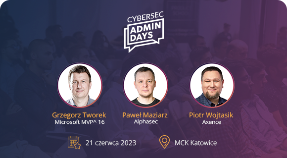 Admin Days 2023 Global już za nami, ale nie zwalniamy tempa! Stacjonarna edycja Admin Days odbędzie się już 21 czerwca w MCK Katowice, jako wydarzenie towarzyszące CyberSec Forum 2023.